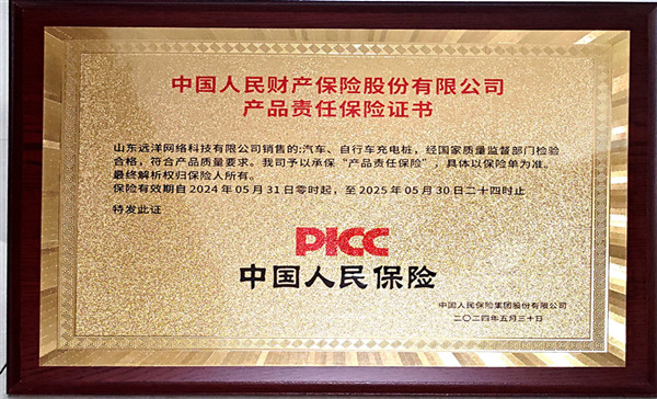 我公司自主研發生產的電動汽車、電動自行車智能充電樁產品,經國家質量監督部門檢驗合格,符合產品質量要求,投保了中國人民財